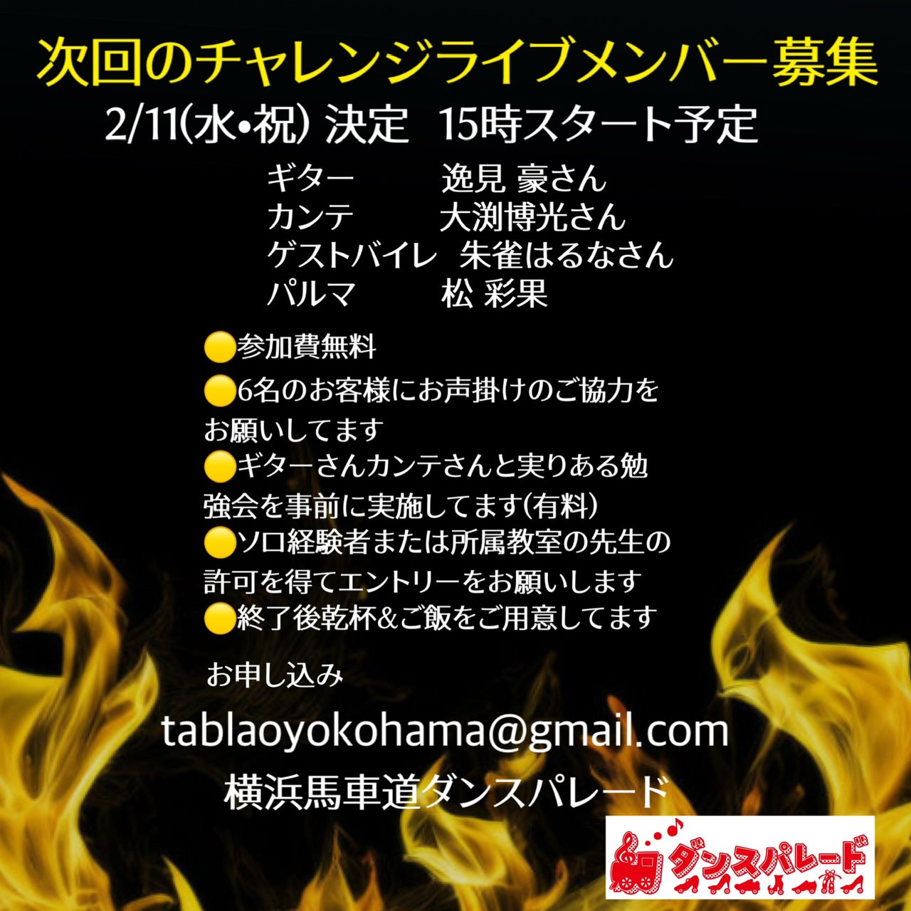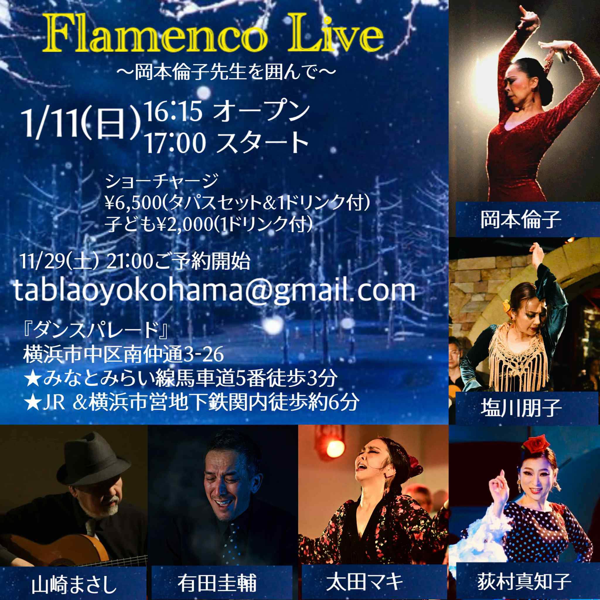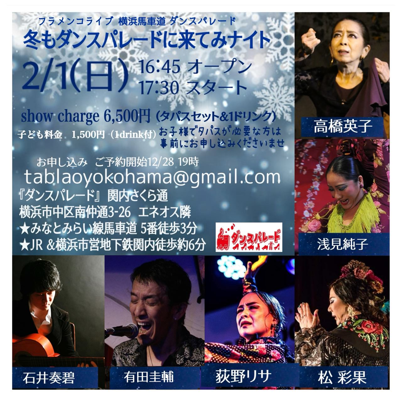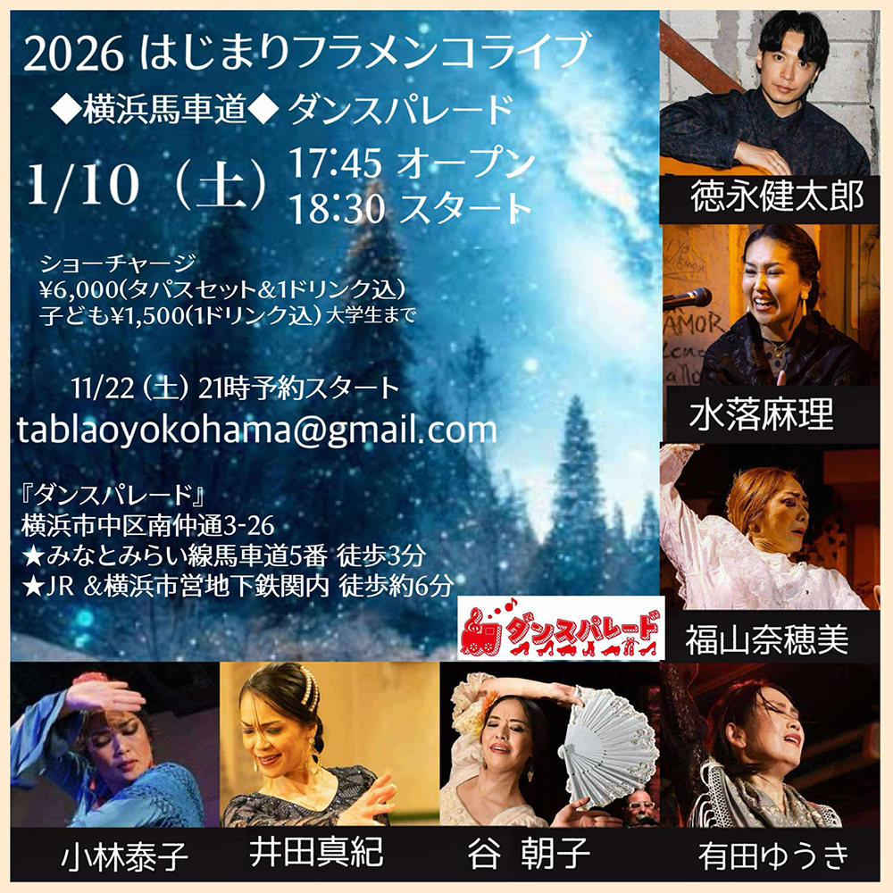 直接「tablaoyokohama@gmail.com」宛もご予約可能です。